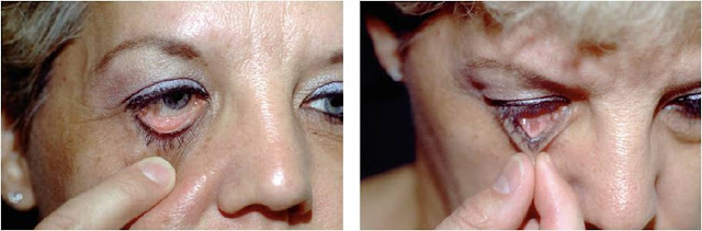 我們可以用手指去捏下眼皮,拉張後放鬆,然後看下眼皮回復位置的速度。如果回復的速度慢(好幾秒),可能就需要另外施行下眼皮的拉提手術,以避免下眼瞼外翻發生。此外,皮膚的鬆緊也會決定手術中要切除多少皮膚。